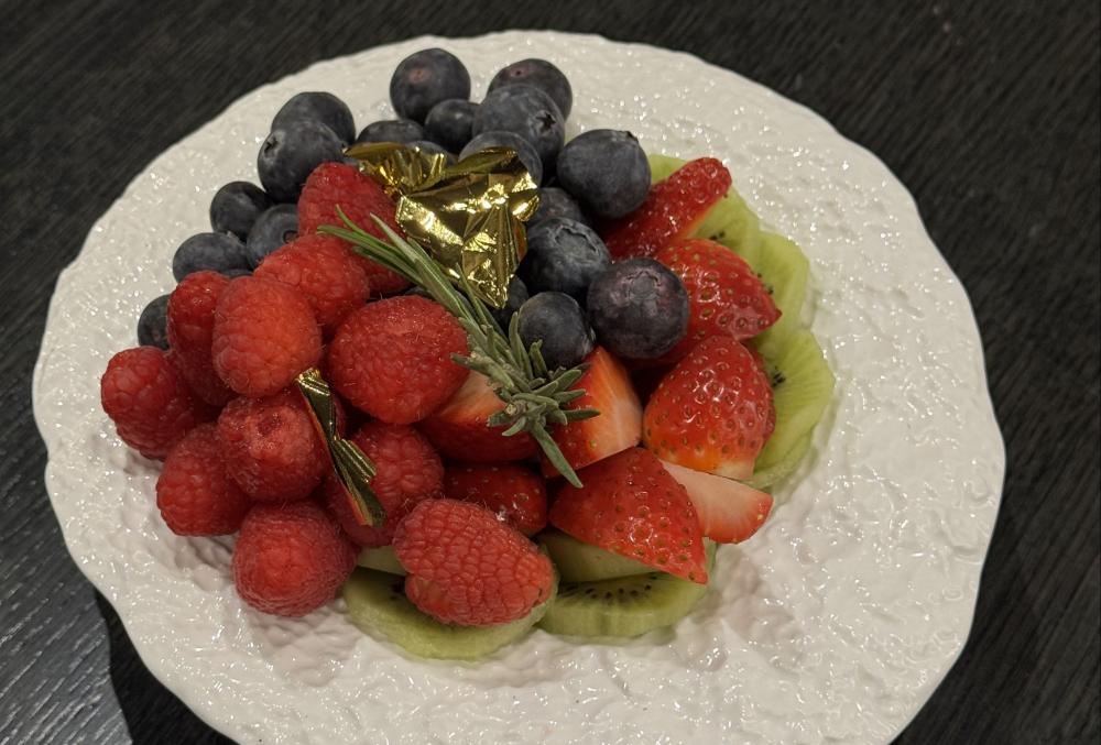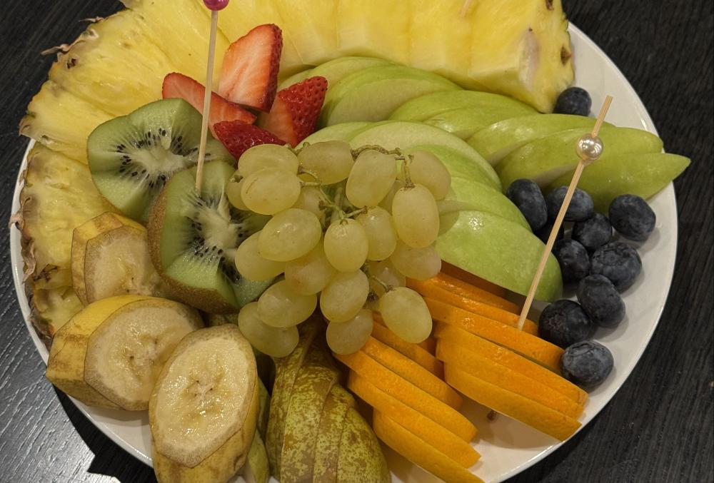 Ананас, груша, виноград, яблоко, апельсин, банан, киви, мята